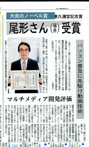 | 2012年04月・ | 東京新宿 京王プラザホテルにおいて 18日は発明記念日であり、大衆のノーベル賞と言われている「東久邇宮記念賞」を受賞。 ![]() ![]() |