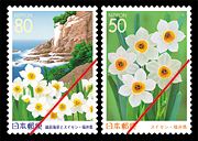 | 2001年08月・ | 北陸郵政局に切手の原画にするため「スイセン」「越前海岸とスイセン」の2種の油絵を依頼される(2001年11月3日発売)ふみカードなど数種類に使用される。原画作者は尾形正直![]() |