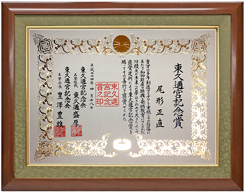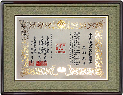 | 2012年11月・ | 東京新宿 京王プラザホテルにおいて 3日は文化の日であり、「東久邇宮文化褒賞」を受賞。 ![]() |