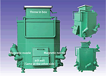 - 販売店様へ納入した磁気熱分解装置を稼動させました。乾式排煙装置をセットしましたので、ダイオキシン排出は基準の5に対して0.27という低い数値です。